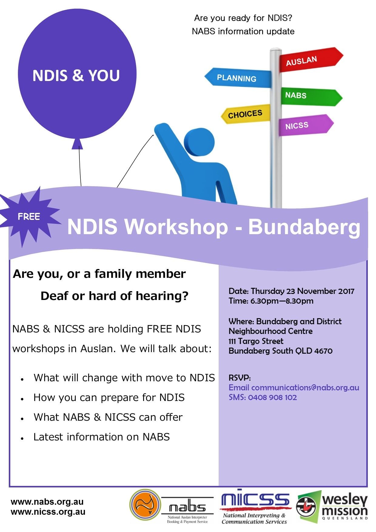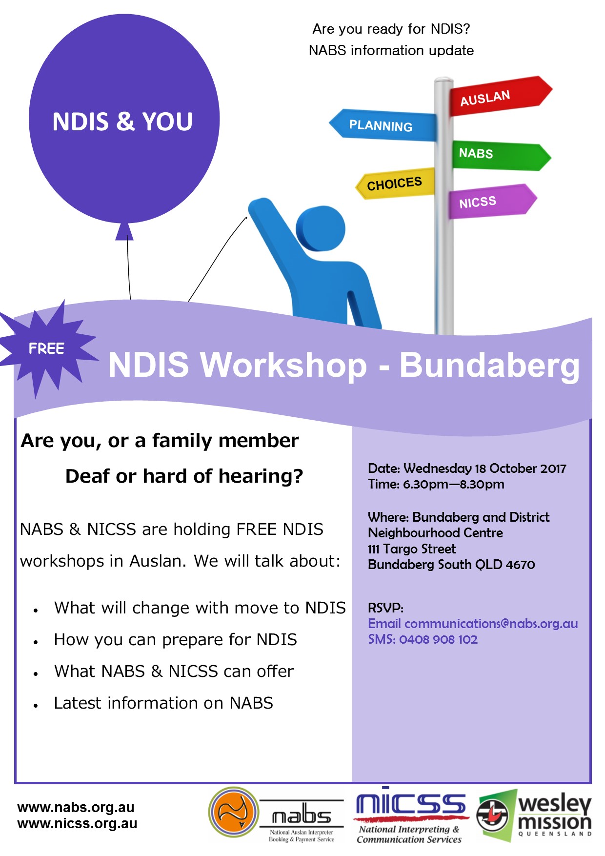 NABS and NICSS is holding a free NDIS information workshop in Bundaberg on Wednesday 18 October 2017.